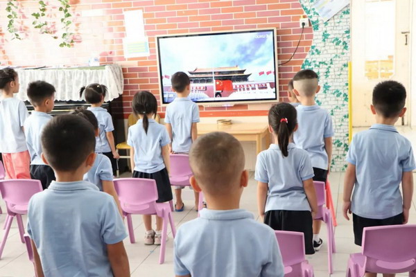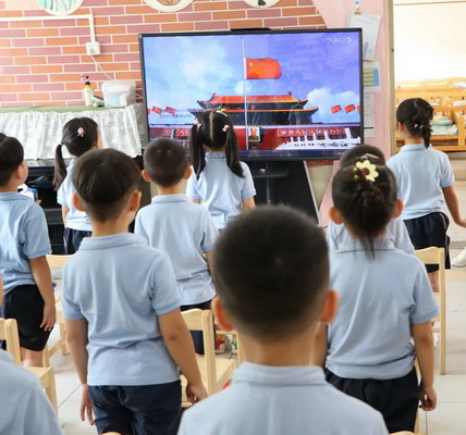 在这个特殊时期,我园开启别样的线上开学典礼,各个班级的幼儿分别在课室里观看开学典礼视频。庄重的升旗仪式、精彩的节目表演过后,园长妈妈罗园长透过视频传达对宝贝的祝福和寄语。《开学第一课》的学习,不仅为了帮助幼儿了解疫情期间的卫生知识,更是旨在提高幼儿的健康安全意识和自我保护能力。看!宝贝们认真投入的神情,相信他们在开学的第一课就能收获满满。